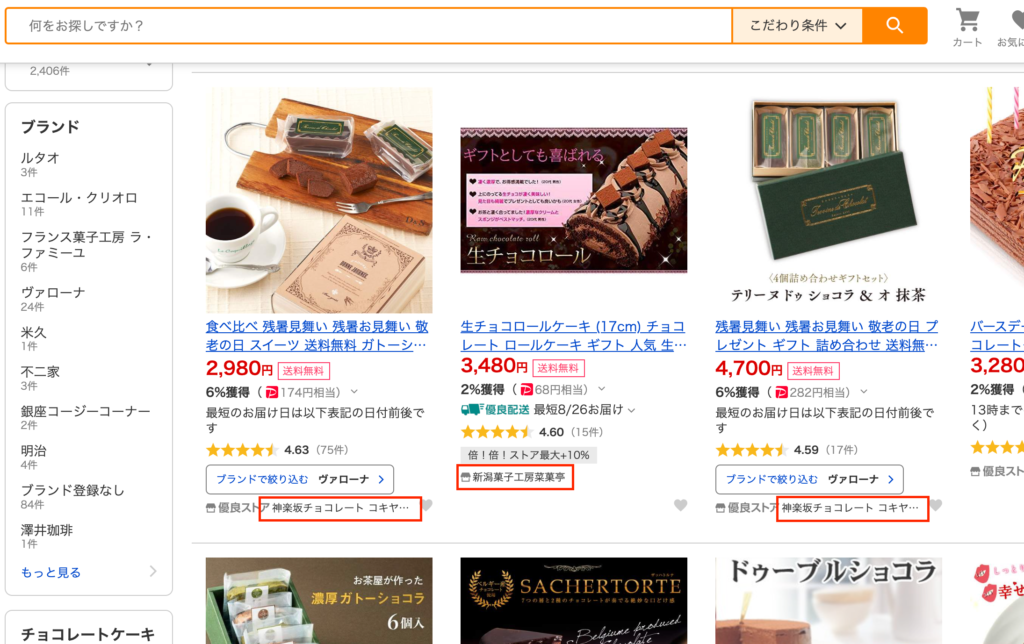 ここから好きなショップをクリックして、ショップのページに遷移します。